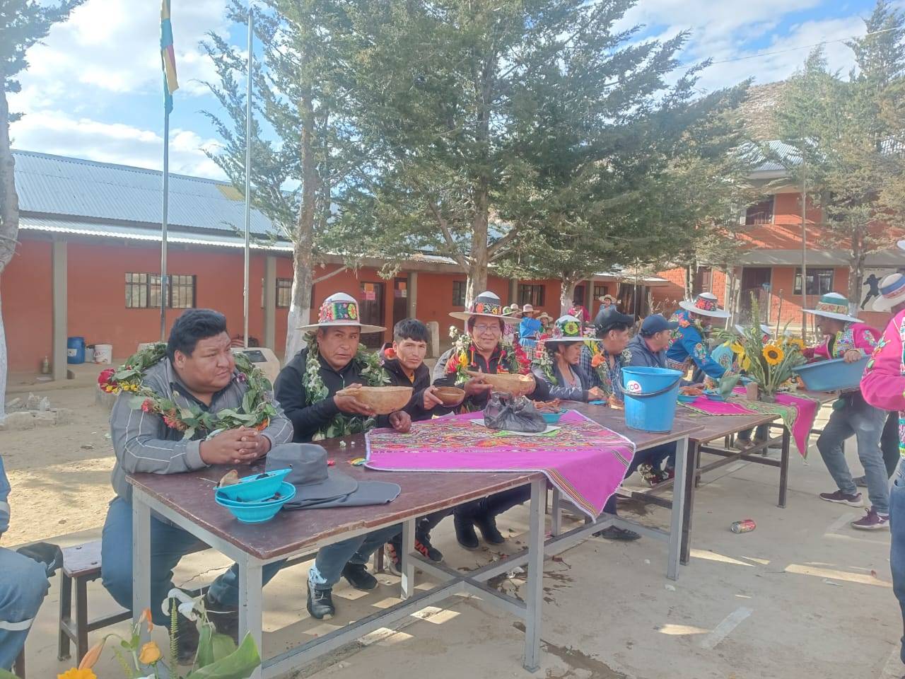 Con música tradicional y la participación de estudiantes, padres de familia y vecinos, nuestras autoridades municipales realizaron el inicio de obra de la “Construcción del Tinglado Polifuncional” para la Unidad Educativa Dionicio Morales de la comunidad de Titakallo.